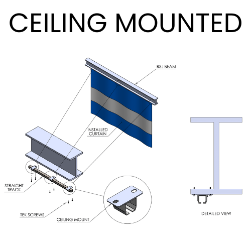 These industrial curtain tracks can be suspended from the ceiling using threaded rods, chains, or uni struts, making them ideal for commercial buildings with pitched roofs. You can explore our track options [here]
