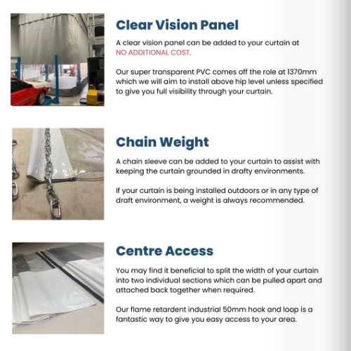 - Control Climate: Our industrial curtains help maintain optimal building temperatures by eliminating drafts. This not only enhances comfort but also reduces energy costs.